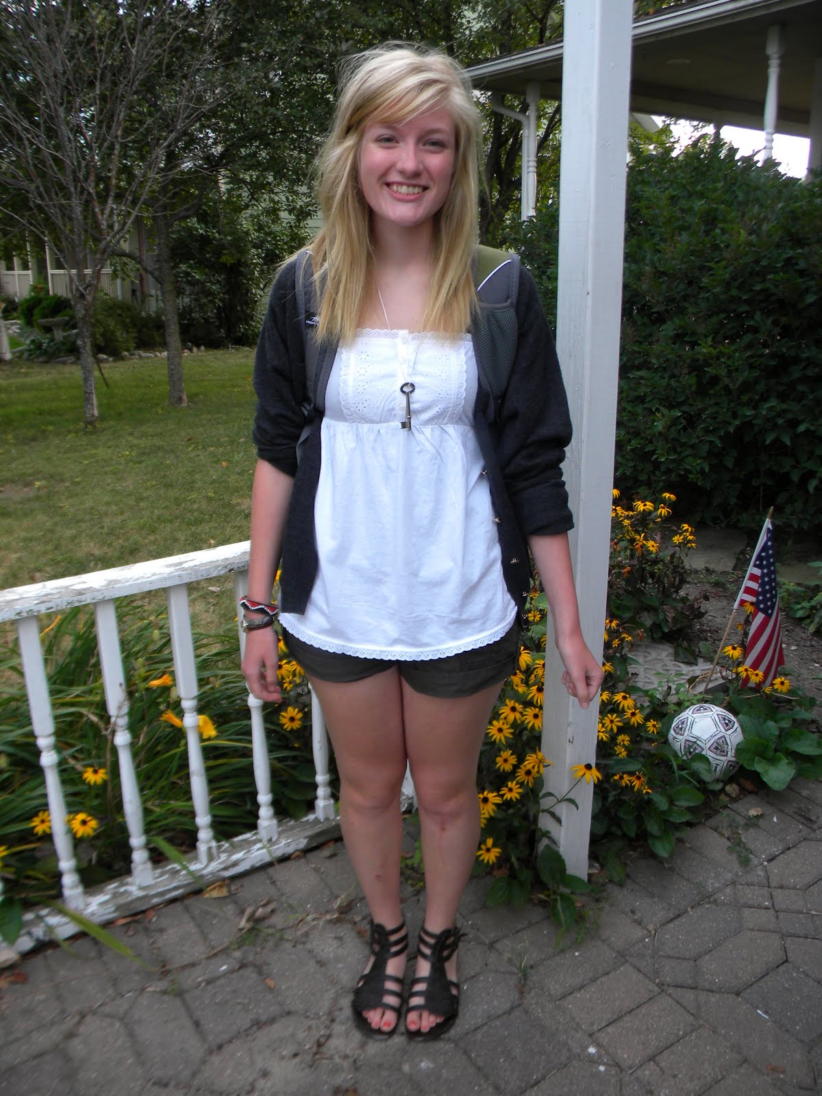 Today was the first day of school. I almost felt like I was starting back to school as I prepared for the day and Meri helped me with morning chores. Took the girls pictures just before Maddy left and then finished breakfast. Drove Meri to school for the first day only!