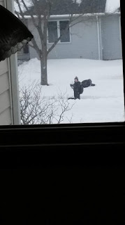 This is the snow that we accumulated over the weekend.  YUCK!  It's SO deep and our driveway isn't even to the pavement yet.  The snowblower wouldn't go that close as it's packed down really good.  We're supposed to get more this weekend.
